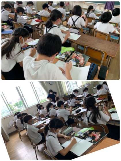 ヒトの体の動く部分を考えながら、まずは想像で、ノートにヒトの絵を描いてみました。