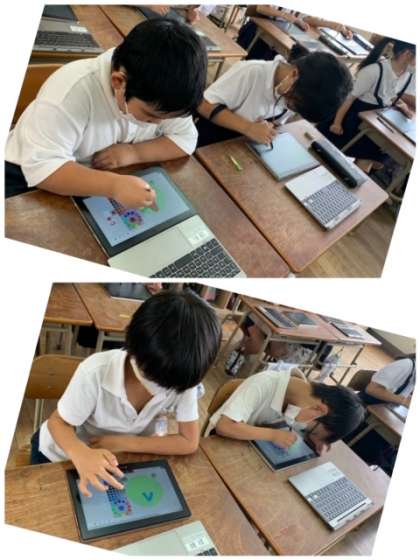 まずは操作方法を教えてもらって、魚の絵を動かしました。
