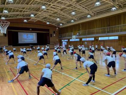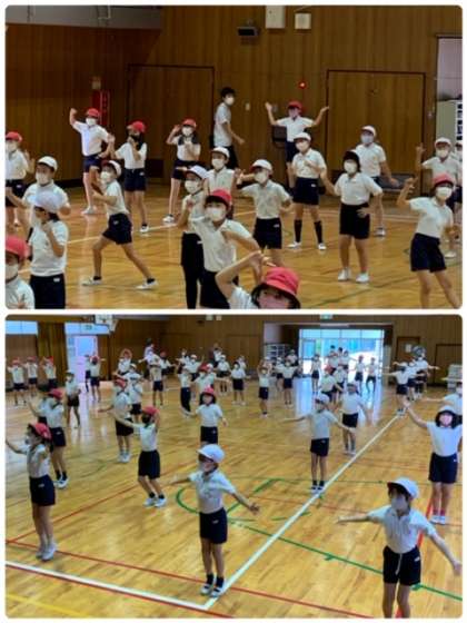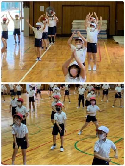 3・4年生〜運動会に向けて! 公開日 2021/10/01 更新日 2021/10/01 お知らせ 3・4年生は、運動会に向けて「ダンス」の練習を合同で行いました。まずは、準備体操をして・・・。とりあえず曲に合わせて踊ってみました。 いいね(0)