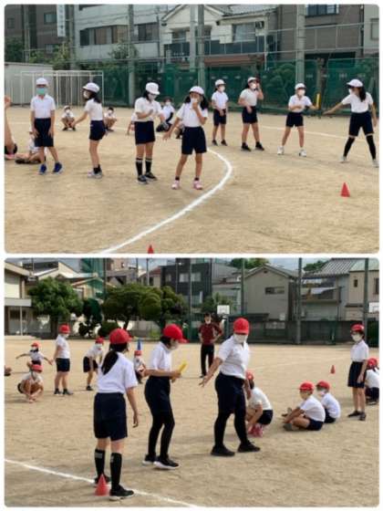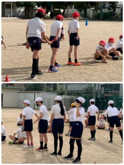 「バトンパス」の練習をしています。まずは、6年生が見本を見せてくれました。
