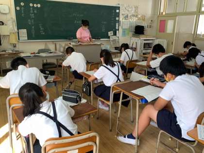 5年1組の国語の時間です。漢字検定に向けて、漢字プリントに取り組んでいます。しっかり頑張って、合格をめざしましょう!!