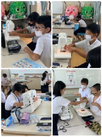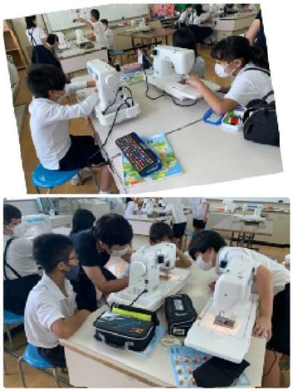 5年2組の家庭科の時間です。下糸ができたら、次は、上糸のかけ方の練習です。