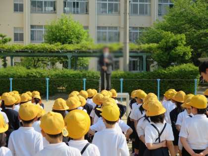 写真は児童朝会の様子です。