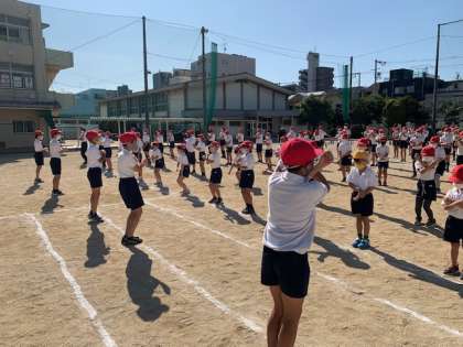 合同体操「ラジオ体操」も練習しました。本番も、しっかり体操している姿を見てもらいたいと思います。