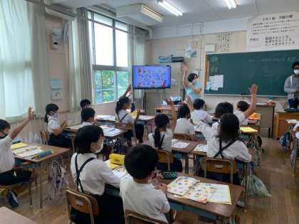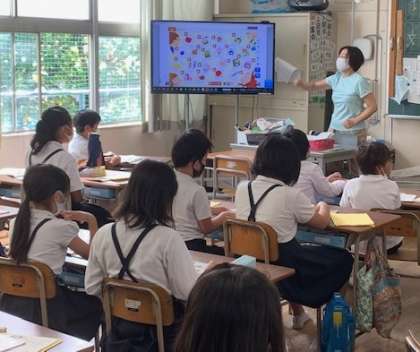 C−NETの先生が、次の単語を言うのを、児童たちは注目しています。なかには、心の中で「当たるように」と願いながら、手を合わせている児童も・・・。みごと当たったときは、歓声があがっていました。