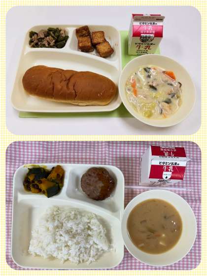 21日、今日の給食は「ごはん、和風ハンバーグ、とうふのみそ汁、かぼちゃのいとこ煮、牛乳」でした。ハンバーグは一人1こ、ボリュームがあり大人気。そして私のおすすめ、かぼちゃのいとこ煮。かぼちゃとあずきを柔らかく煮ています。「いとこ煮」という名前の由来は、かたい材料から順に入れることから、おいおい(甥)、めいめい(姪)にかけた語呂合わせと言われています。その他にも諸説あるようです。給食のいとこ煮は、あずきはドライパックで、すでに柔らかくなったものを使っていたので、おいしく食べる事ができました。ちょっと豆が苦手な人も、昔からある献立を少しは食べてみてくれていたようです。