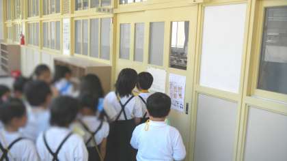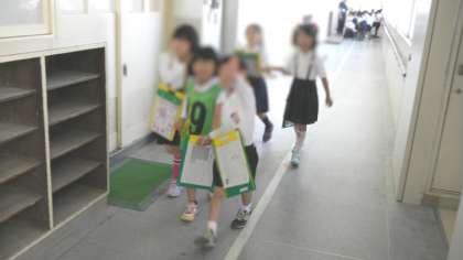 「こっちだよ」「並んで歩こう」と1年生に優しく声をかけている2年生の姿も見られました。