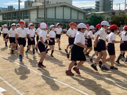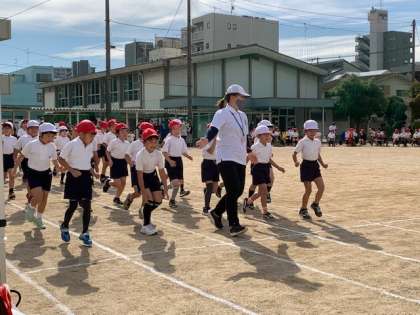 次は、プログラム3番、2年生による個人走「ゴールをめざして」です。2年生が入場してきました。