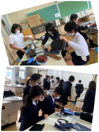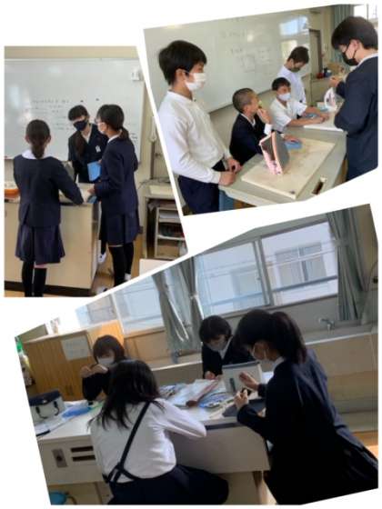 6年生の家庭科の時間です。今日から「エプロンの製作」に入ります。最初にポケットを作っています。