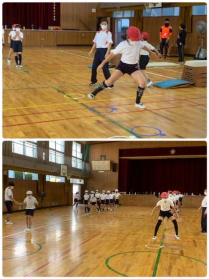 跳び箱を跳ぶ前に、段階を経て動きを覚えていきました。
