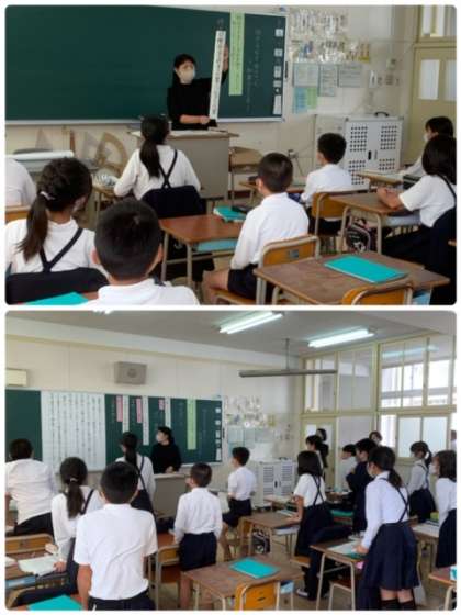 11月1日(月)、5年1組で研究授業を行いました。学習の単元は、「 『和の文化を受けつぐ』 −和菓子をさぐる 」です。