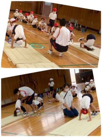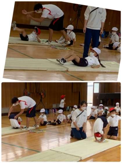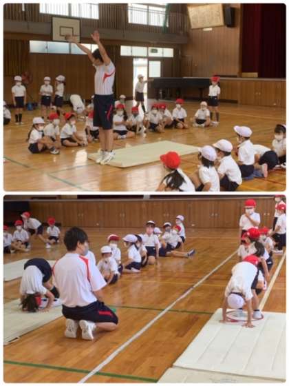 1年生体育〜プロのインストラクターに指導していただきました! 公開日 2021/11/05 更新日 2021/11/05 お知らせ 続いて、くまさんの体勢から・・ぐるんとまわって・・・前転の練習です! いいね(0)