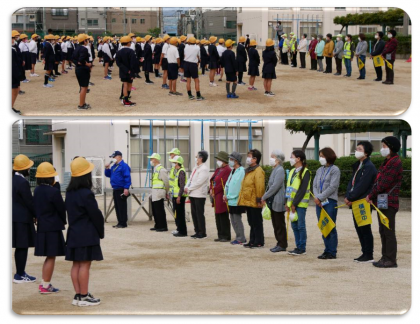 今日は、老人会の子ども見守り隊の方々にお越しいただきました。本来であれば、4月の初めにご紹介し、見守っていただくところですが、今月から見守り活動を再開されるということでのご紹介です。毎週水曜日の下校時、特に気になる交差点で見守ってくださいます。子どもたちもみんな元気よくあいさつしていきたいものです。
