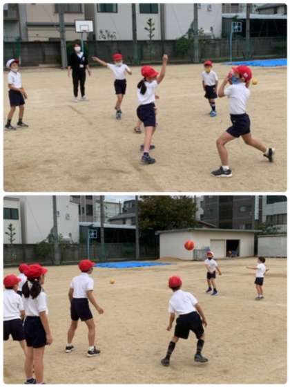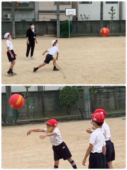 2年生は、体育の授業で「ドッヂボール」に取り組みました。2つのコートに分かれて試合をしました。