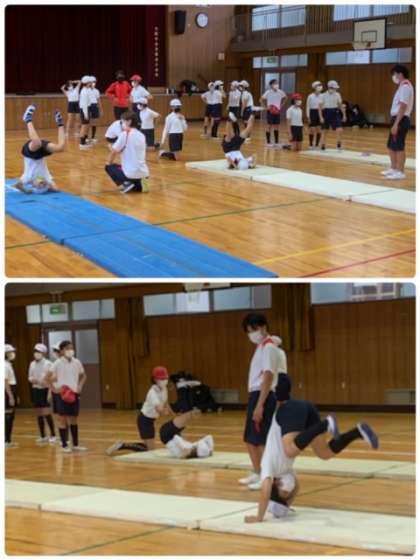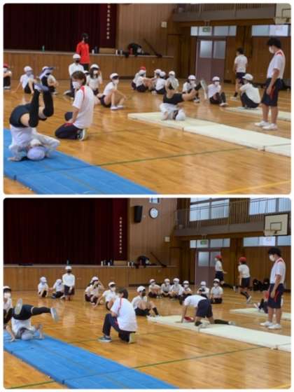 6年生体育〜プロのインストラクターに指導していただきました! 公開日 2021/11/09 更新日 2021/11/09 お知らせ 11月8日(月)、6年生もプロのインストラクターの方に「マット運動」を指導していただきました。前転・後転、そして、できる人は開脚後転を順番に取り組んでいきました。 いいね(0)