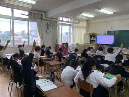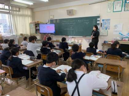 4年生の算数の時間の様子です。今日の学習のめあては、「計算のきまりを使って、くふうして計算しよう」です。どんな計算のきまりを使って工夫できるのかを、みんなで考えています。