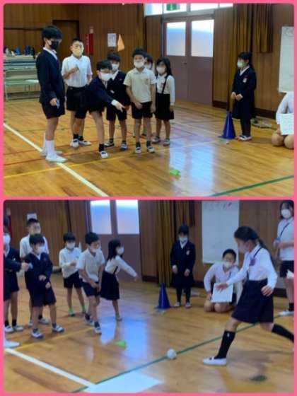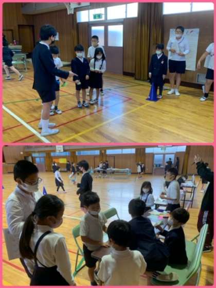 3・4班の紙飛行機飛ばしは、講堂で行いました。低学年児童には、高学年のお兄さん・お姉さんが、紙飛行機の折り方を教えてくれています。紙飛行機ができたら、どのくらい飛ばすことができるのか・・・チャレンジです!