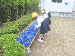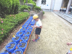 1年生があさがおに水やりをしています。