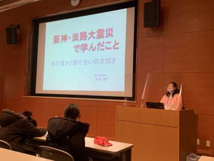 語り部の方のお話を聞いています。