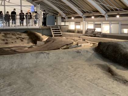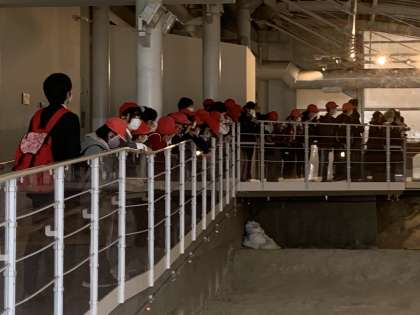 断層が、どのようにできたのか、説明を聞いています。