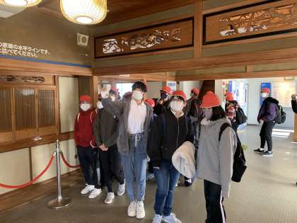 地震でずれた欄間やレンガも見学。こんなにずれる!