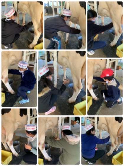 乳絞り体験の様子です。