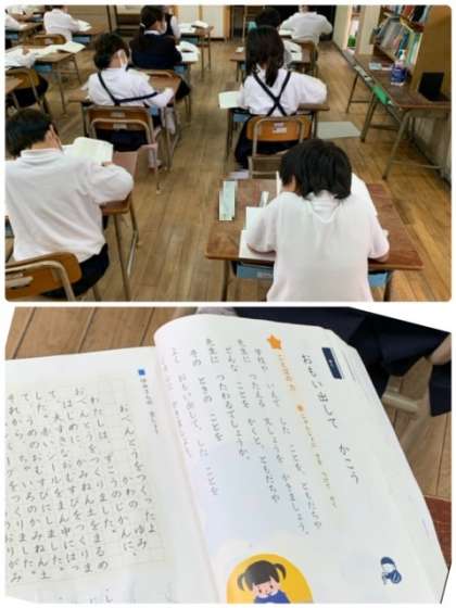 1年2組の国語の時間です。単元「おもい出して かこう」の学習に入りました。ここでは、順序に気をつけながら文章を書く学習をしていきます。どんな文章を書いてくれるのか楽しみにしています。
