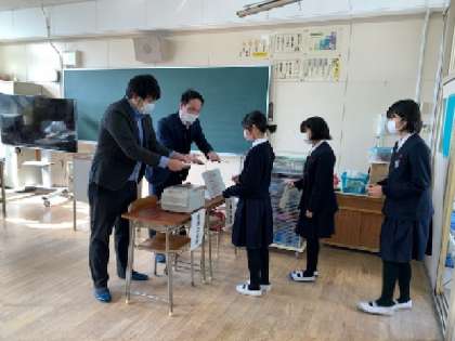 6年生 出前授業「選挙」 公開日 2021/12/13 更新日 2021/12/13 お知らせ 実際に選挙に使われている「投票用紙」や「投票設備」を使って、「模擬投票」も経験させてもらいました。 いいね(0)