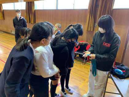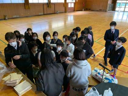 「夢・授業」が終わっても、名残を惜しんでいます。もう一度、近くでメダルも見せていただきました。