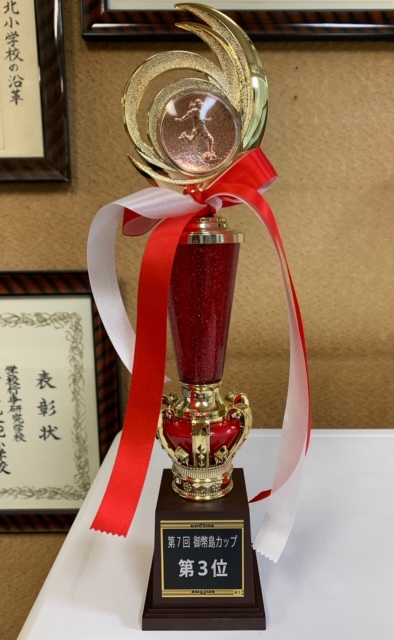 1月17日(月)の児童朝会は、Teamsで行いました。まずは、子ども会のキックベースのチームが、「御幣島杯」で第3位になったことを紹介し、代表児童にトロフィーを渡し、各教室から拍手を贈りました。