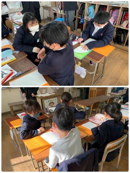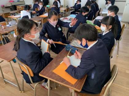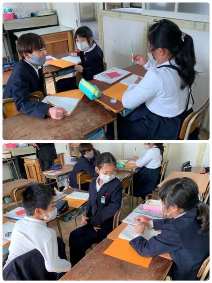 日常的に使っている物とその数え方、数え方が表す物の特徴について班で話し合っています。