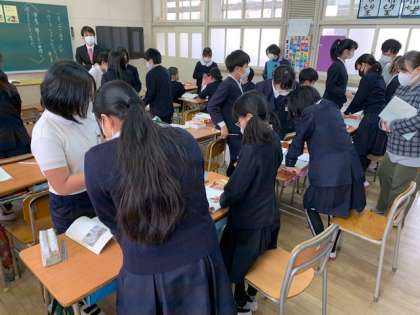 先生から「筆者は誰のことを一番強く伝えたいと思っているのか」投げかけられました。児童たちは、これまでの説明文で学習したことを思い出し、様々な観点から自分の意見を考えました。最初に、自分の考えを根拠を添えてノートに書き、グループで意見交流しました。