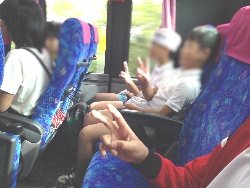 退舎式を終え、バスに乗り込み出発! 10時に姫路セントラルパーク到着予定です。
