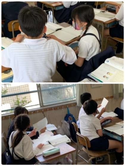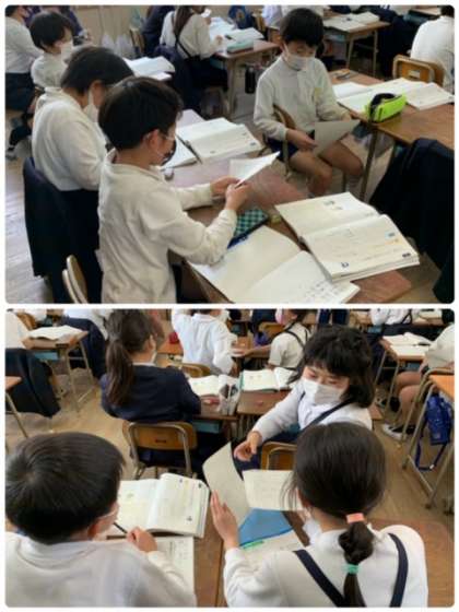 集めた言葉を、近くの友だちと交流しています。次の授業では、集めた言葉を使って詩を作っていきます。詩の完成が楽しみです。