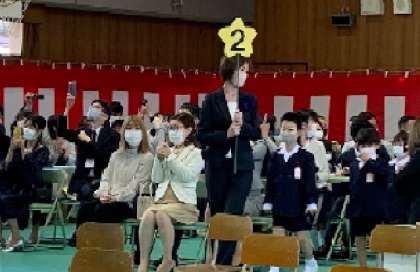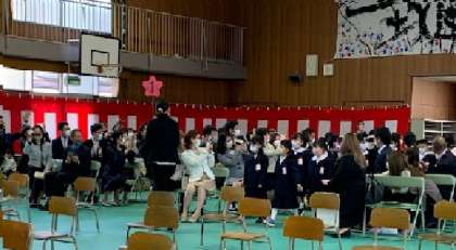 4月7日(木)、朝から晴天に恵まれ、暖かい一日となりました。九条北小学校の中庭の桜も満開となりました。春を感じる今日、48名の新1年生を迎え、入学式を実施しました。保護者の皆様の拍手に迎えられ、新1年生が入場してきました。