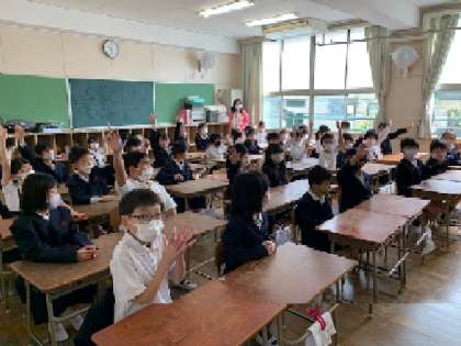 3年生の教室の様子です。3年生の教室は、2階の職員室の横になります。新しい担任の先生から、3年生の始まりにあたってのお話をしてもらっています。児童の様子を見ていると、がんばろうという様子がとても感じられました。期待してます!