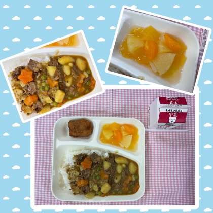 11日の給食〜入学祝い献立〜 公開日 2022/04/12 更新日 2022/04/12 給 食 入学祝い献立のデザートは、今までは「フルーツ白玉」が多かったのですが、今回はミックスフルーツ(缶)とみかんゼリーを組み合わせた「フルーツゼリー」が登場しました。昨日は少し暑いくらいの陽気。つるんと食べることができるゼリーは大好評でした。 いいね(0)