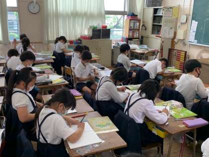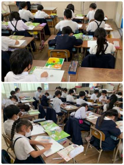 3年生 理科 公開日 2022/04/14 更新日 2022/04/14 お知らせ 3年生の理科の時間です。これから学習するのは、単元「生き物をさがそう」の学習です。そして、今日のめあては、「中庭の自然を観察しよう」です。 先生から、「これから中庭の桜を観察します。その前に、記憶にある桜の花を描いてみましょう。」ということで、記憶をたどってノートに描いています。いざ描こうとすると、何回も見ているはずなのに・・・・色はどうだったかな?形はどうだったかな?・・・と迷ってしまうようです。 いいね(0)