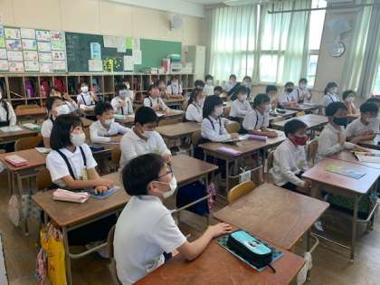 3年生の教室から楽しそうな声が聞こえてきました。C-NETの先生と学ぶ外国語活動の時間です。画面で出てくるスラッシュカード(絵や写真など)を見ながら、単語を発音していきました。児童から「楽しすぎる!」という声が出ていました。