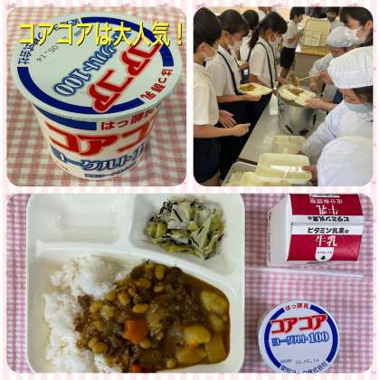 今日の給食は「牛肉と大豆のカレーライス、キャベツのひじきドレッシング、ヨーグルト、牛乳」でした。カレーなので、みんな大喜び。チャイムが鳴って、給食の準備が始まると、廊下から「カレーライス!」「今日はカレー!」と声が聞こえてきました。