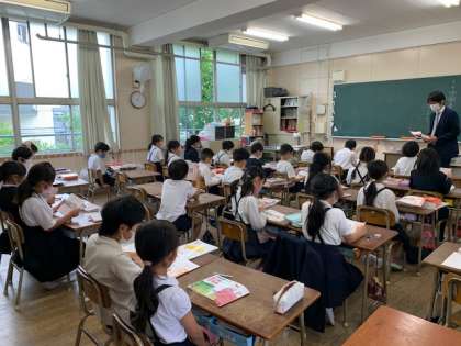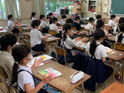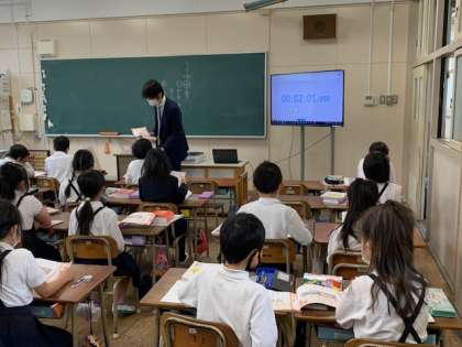 3年1組の国語の時間です。授業の初めに、「話す・聞くスキル」ドリルを活用して、音読に取り組んでいました。取り組んでいるのは、「大漁」のページです。先生と交互に音読を進めたり、手拍子とともにテンポよく音読したり・・・。最初はドリル見ながら、続いてドリルを閉じて取り組んでいました。どの児童も自信をもって音読している様子が伺えました。