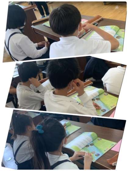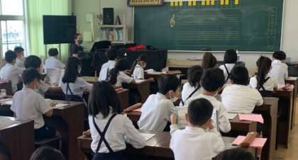 連休を挟んで、久しぶりの音楽の時間です。まずは前回までの練習した「友だち」を歌って、授業が始まりました。今日の学習は、新しい歌「春の小川」に挑戦します。知っている児童もいましたが、ほとんどの児童は、初めて聞くようです。まずは、CDを聞いて、歌のイメージをつかみました。