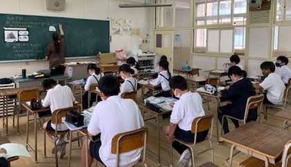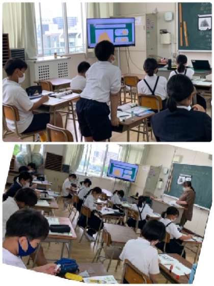 高学年ルームで学習するメンバーも、同じ問題に取り組んでいます。三角形の3つの角の和が180度になることを使えばどうだろう・・・と考えつきました。