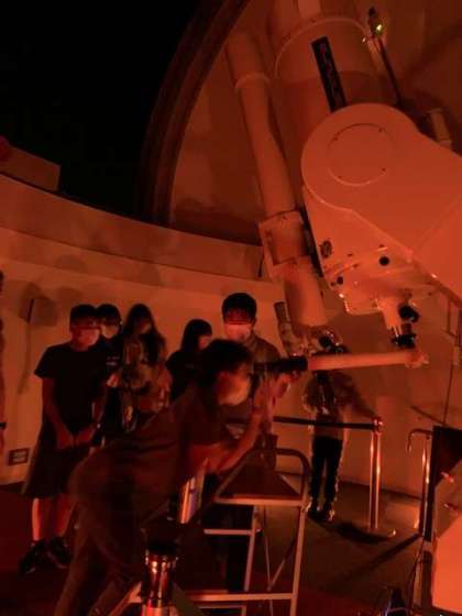 順番に天体望遠鏡を観ています。