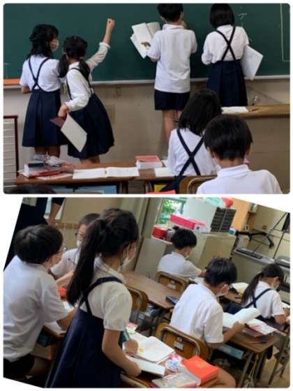 お友だちと意見の交流をしました。また、それぞれの意見を、根拠も添えて発表しました。いろいろな意見が出てきて、活発な交流ができています。