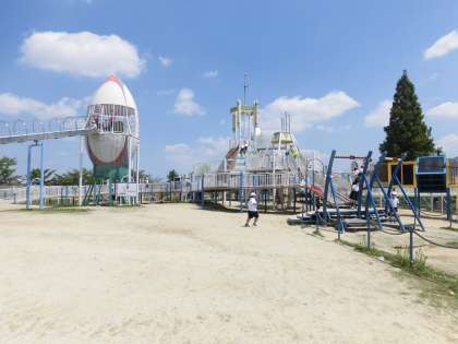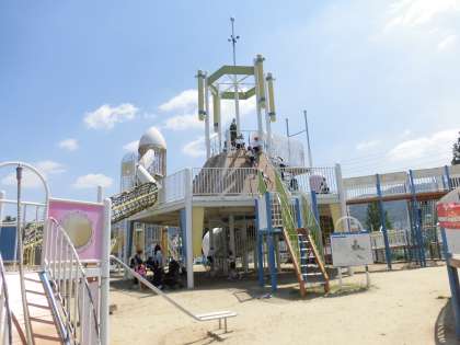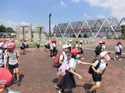 花園中央公園につくと大きなスタジアムがあり、みんなびっくりしていました。