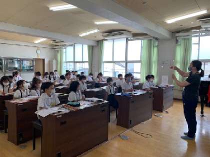 3年生の音楽の時間です。リコーダーの指使いを教えてもらっています。頑張って覚えて、みんなで演奏しましょう!