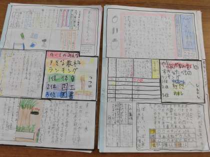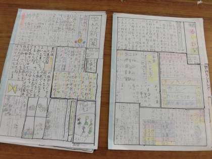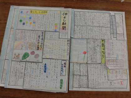 グループに分かれて、インタビューしたり、アンケートを取ったりして一人ひとりが記事を書きました。