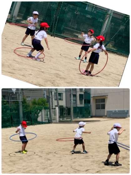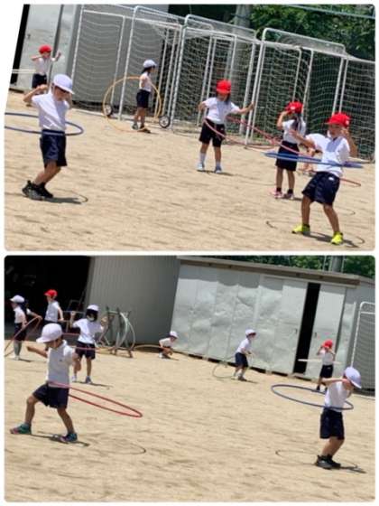 1年生 体育〜上手にできたよ! 公開日 2022/06/03 更新日 2022/06/03 お知らせ 1年2組の体育の時間です。フラフープを使った運動をしています。まずは、フラフープを体で回しています。「見て!見て!」と言って、チャレンジしてくれました。上手にできていることに感心しました。次は、転がるフラフープを追いかけて走りました。意外な方向に動いていくこともあり、結構、楽しそうです。 いいね(0)