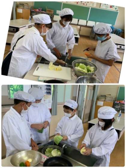 6年生 調理実習〜班で協力して! 公開日 2022/06/03 更新日 2022/06/03 お知らせ 6年1組に続いて、6年2組も「調理実習」を行いました。どちらのクラスも、みんなが協力し、進んで自分ができることを見つけて、実習に取り組んでいました。 いいね(0)